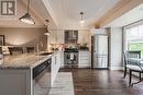 Welcome to this 1,240 sq.ft. beautifully updated 3-bedroom, 2-bathroom condo offering the perfect blend of style, comfort, & convenience for low maintenance living. Step inside to discover a bright & spacious open concept living & dining area with new flooring throughout. The heart of this home is a newly renovated eat-in kitchen featuring granite countertops, stylish backsplash, sleek stainless steel appliances & ample cabinetry - ideal for home cooks & families alike! Enjoy your morning coffee or unwind at the end of the day on the oversized private balcony. Retreat to 3 generous bedrooms, including a primary suite with its own full bathroom, while a second full bathroom provides convenience for guests & family. In-suite laundry, forced air gas heat, A/C & wired for Bell Fibe plus 1 owned underground parking spot & storage locker for added convenience. Located in the vibrant, sought-after Dempsey neighborhood, this condo is just minutes from highway 401, the GO station, top-rated shopping, dining, schools & parks - offering everything you need right at your doorstep. Access to club house w/ party room, underground car wash & gym on-site. Don't miss this opportunity to own a stylish, move-in-ready home in an unbeatable location! (id:7525)